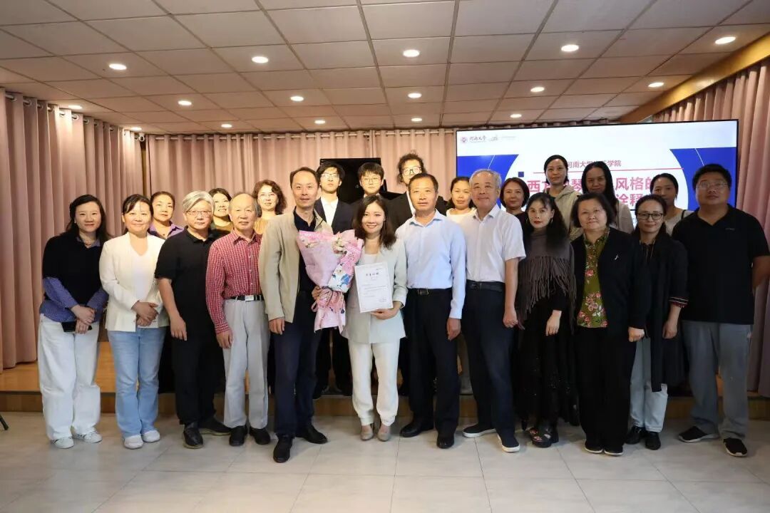 讲座公开课的尾声,音乐学院副院长王新为钢琴家石文婷颁发了“至善论坛”学术讲座纪念证书,充分肯定她为音乐学院钢琴教学工作带来的示范指导。聆听讲座的师生纷纷表示,这场讲座公开课将作品风格与示范演奏紧密结合,为钢琴“一对一教学”提供了专业参考。本场讲座不仅是一场学术的传递,更是一次艺术的共鸣。它以音乐史为经纬,以作品为纽带,在追溯西方钢琴风格演变的同时,深化了师生对钢琴经典作品的理解,将钢琴教学与美育浸润推向更高水平和更高境界。