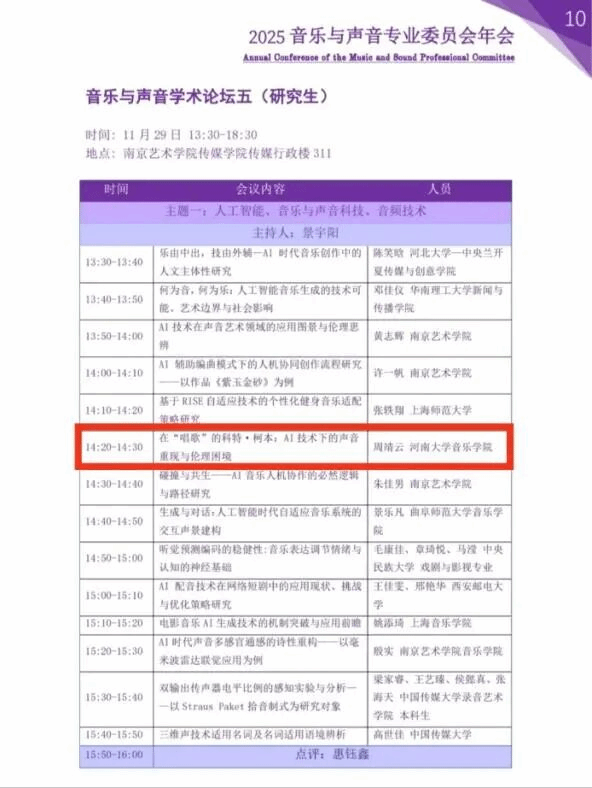 11月28至30日,中国高校影视学会“音乐与声音专业委员会”2025年会暨“第五届音乐与声音论坛”于南京艺术学院成功举办。本届论坛关注人工智能对音乐与声音艺术创作、生产的解构与重构;人工智能对音乐与声音艺术传播、接受的颠覆与重塑;人工智能对音乐与声音艺术创新、创意的禁锢与解放,搭建了跨学科、跨媒介的高层次学术交流平台,共同探讨人工智能时代音乐与声音艺术的创新发展,推动相关领域理论研究与实践融合。