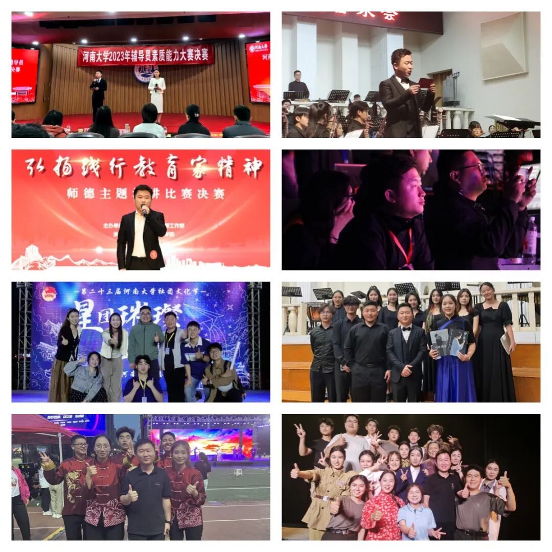 作为音乐专业出身的辅导员,王计鹏深耕“音乐+思政”育人模式,让价值引领既有艺术感染力,又有情感穿透力。他先后担任2023年、2025年辅导员素质能力大赛主持人,参与执导河南大学第二十三届学生社团文化节晚会、第二届大学生文化艺术节之青春歌会等重大文艺活动。排练现场,他既是艺术指导,也是思政导师——讲解红色曲目背后的历史故事,引导学生感悟青春责任,让学生在艺术实践中厚植家国情怀。