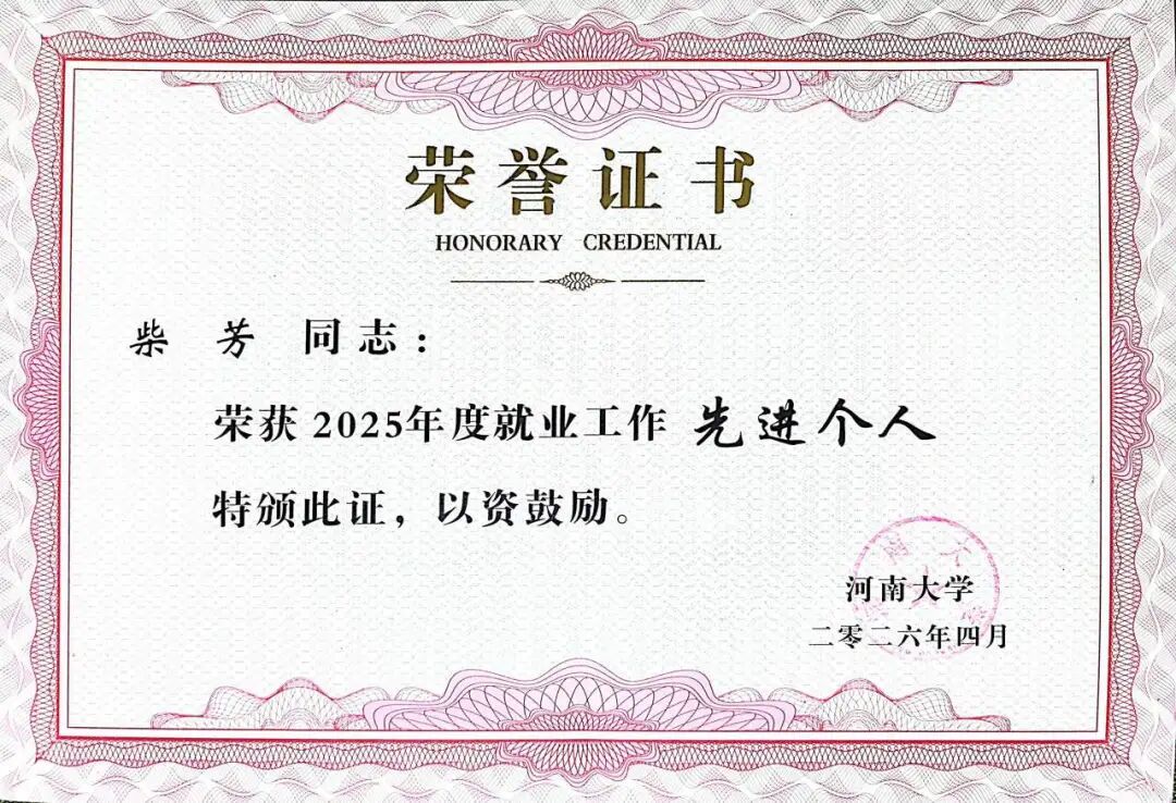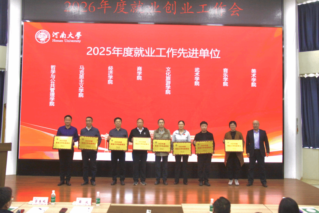 音乐学院凭借扎实高效的就业工作、亮眼的创新创业赛事成果,荣获2025年度就业工作先进单位;学院党委副书记柴芳获评2025年度就业工作先进个人;2023级本科生辅导员王计鹏荣获第三届全国大学生职业规划大赛河南大学校赛优秀指导教师奖。
